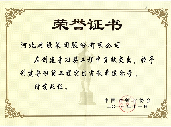 2017年創(chuàng)建魯班獎(jiǎng)工程突出貢獻(xiàn)單位